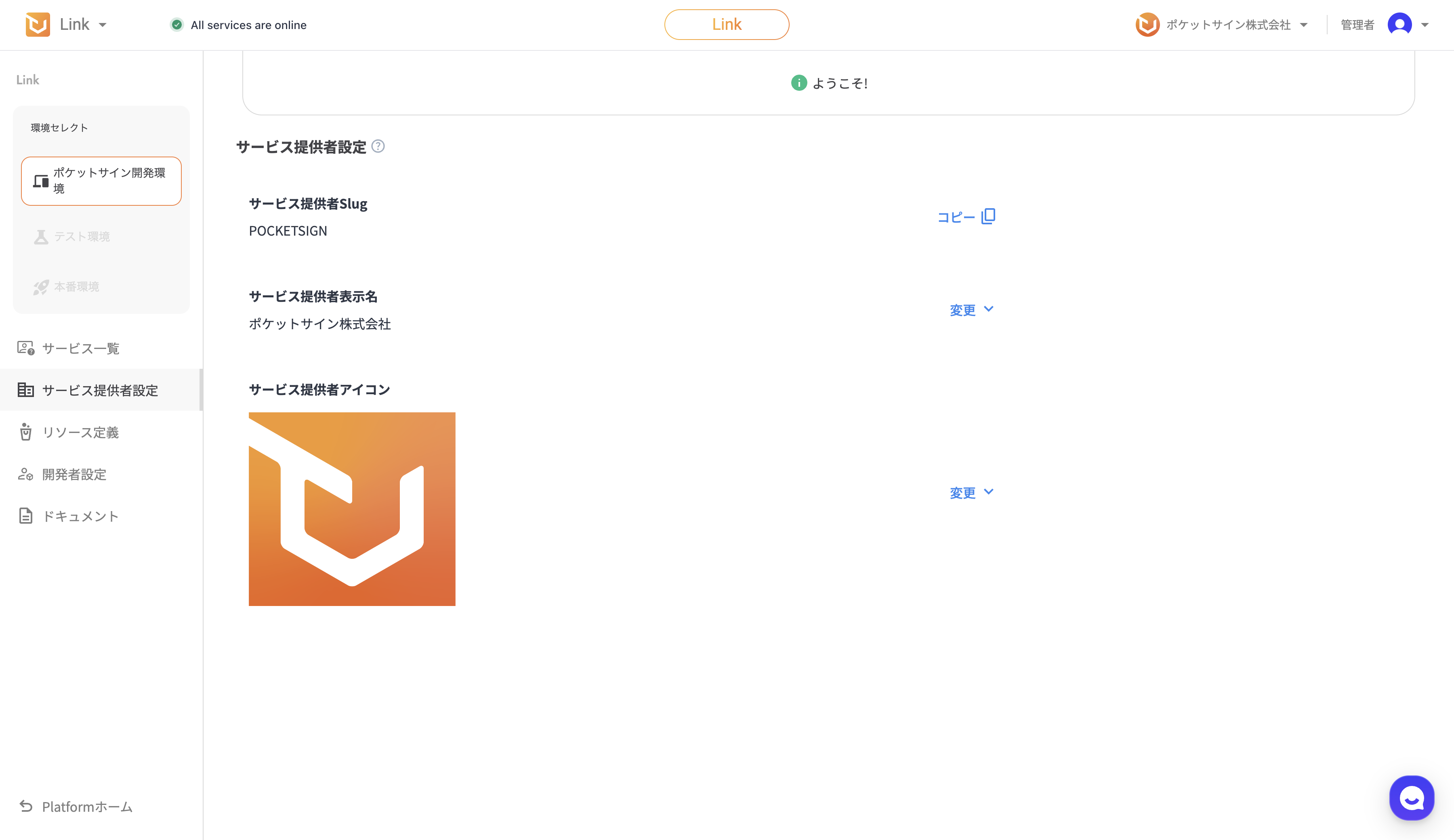 PocketSign Platform の組織に対して、サービス提供者の情報を設定することができます。